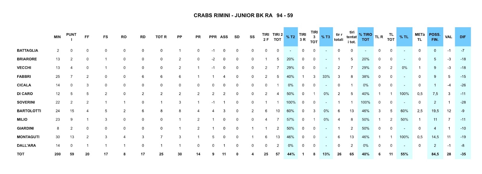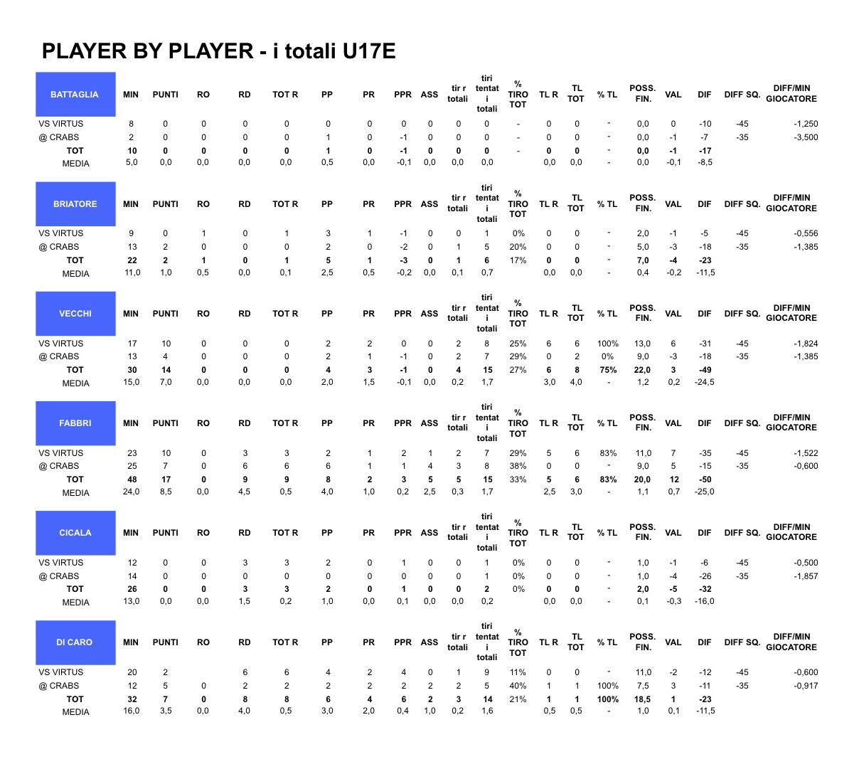 p.s.: grazie alla disponibilità e all’eccellente lavoro di Michela, da oggi pubblichiamo “in real time” anche le stats comparative ed i totali dei nostri!