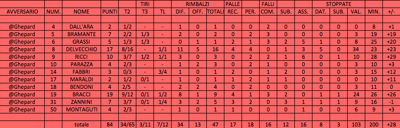 Ricci 10, Parazza 4, Fabbri 3, Maraldi 2, Bendoni 4, Bracci 19, Zannini 7,