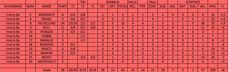 JBK U19L: Bramante 6, Grassi, Delvecchio 24, Ricci 11,