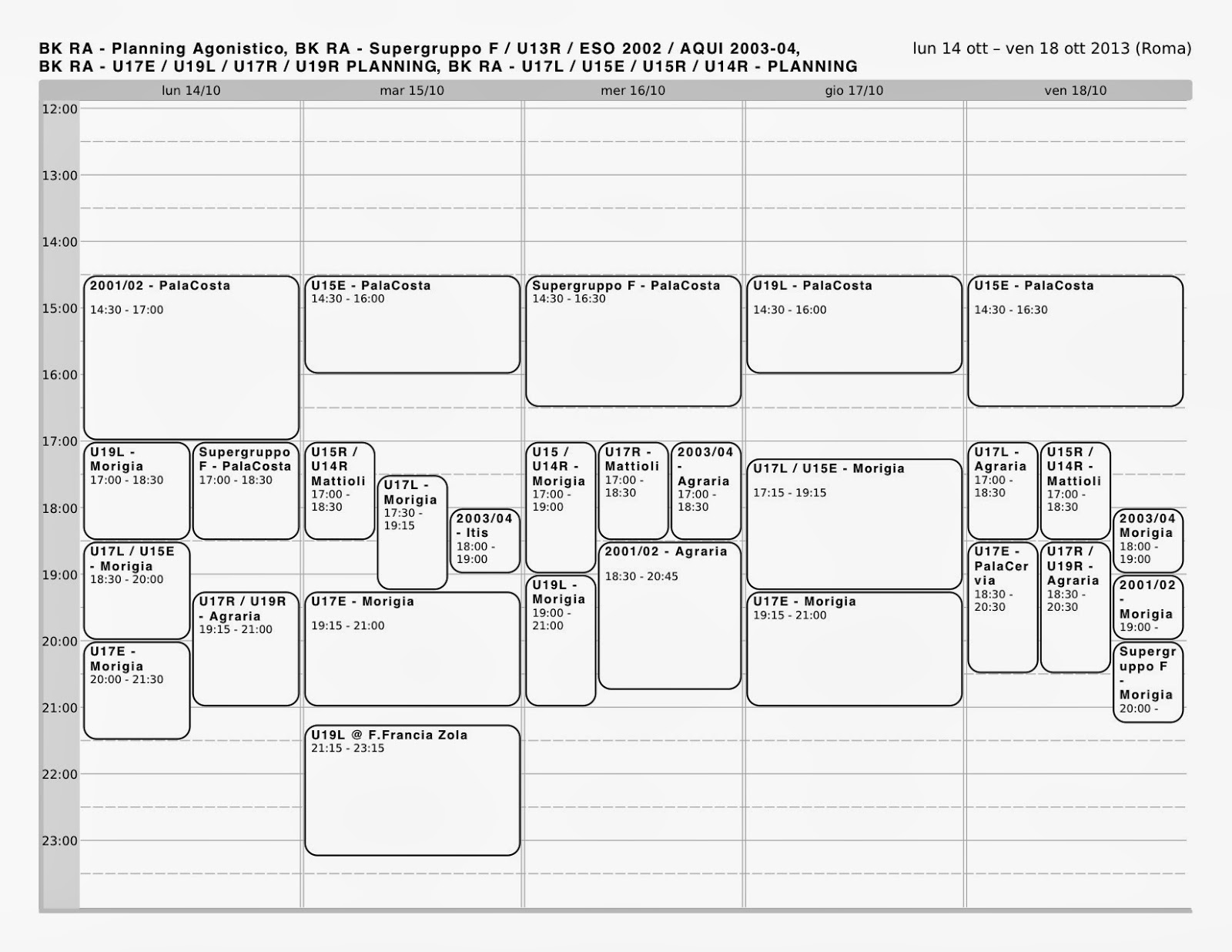 Orario Gruppi Agonistici: 14 Ott – 18 Ott