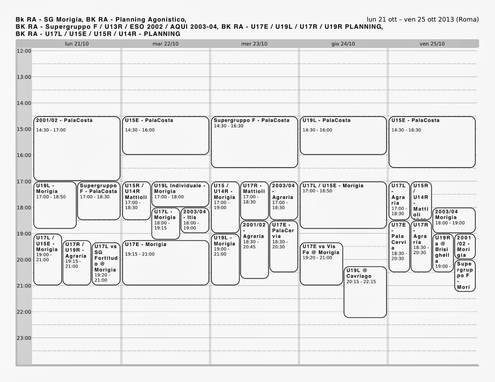 Orario Gruppi Agonistici: 21 Ott – 25 Ott