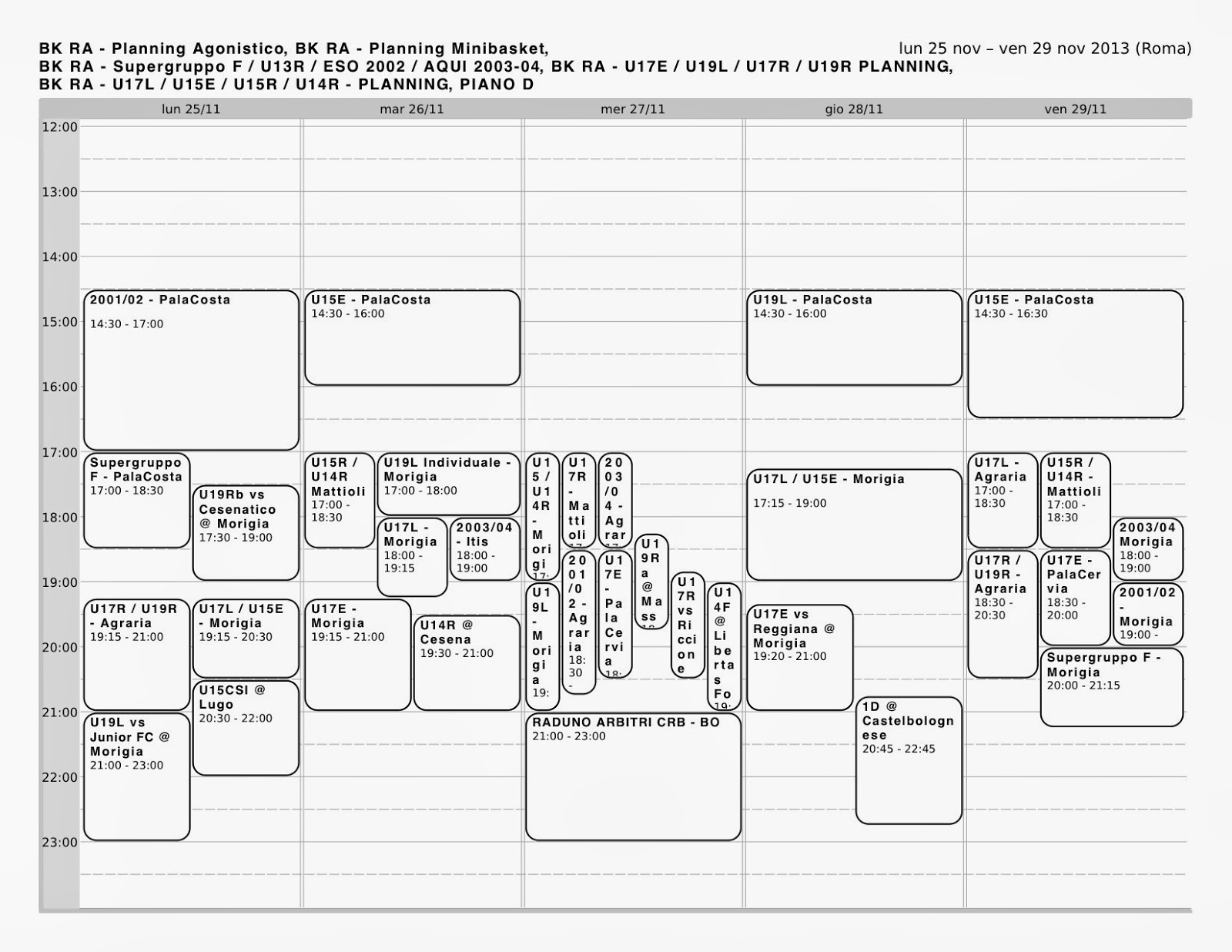 Orario Gruppi Agonistici: 25 Nov – 29 Nov